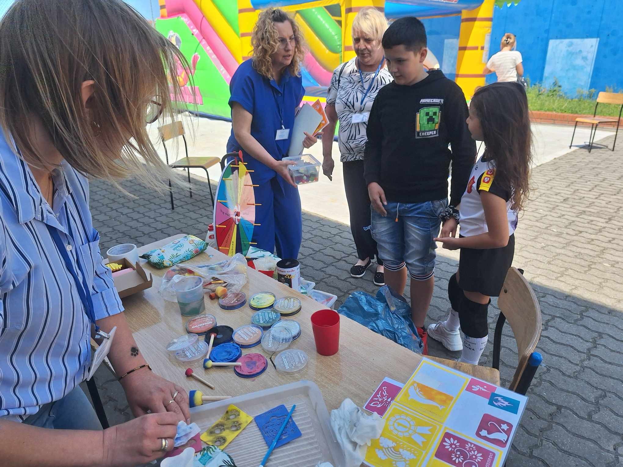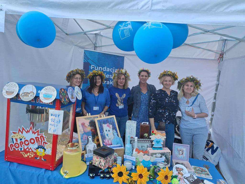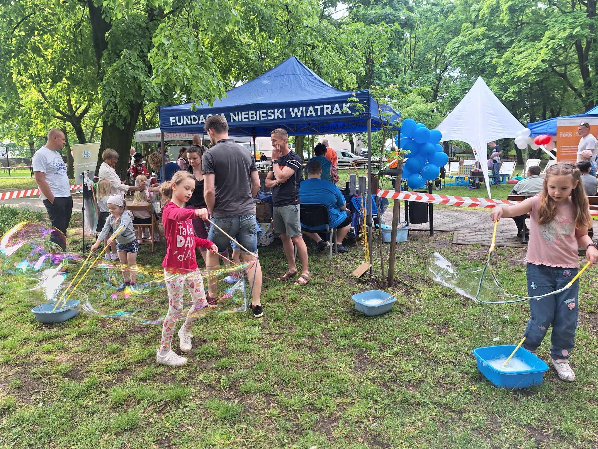 Pod niebieskim namiotem zaprezentowaliśmy działalność Fundacji oraz wspólnie bawiliśmy się w meeeega duuuuużych bańkach mydlanych, przy strzelaniu z łuku i pleceniukolorowych warkoczyków.