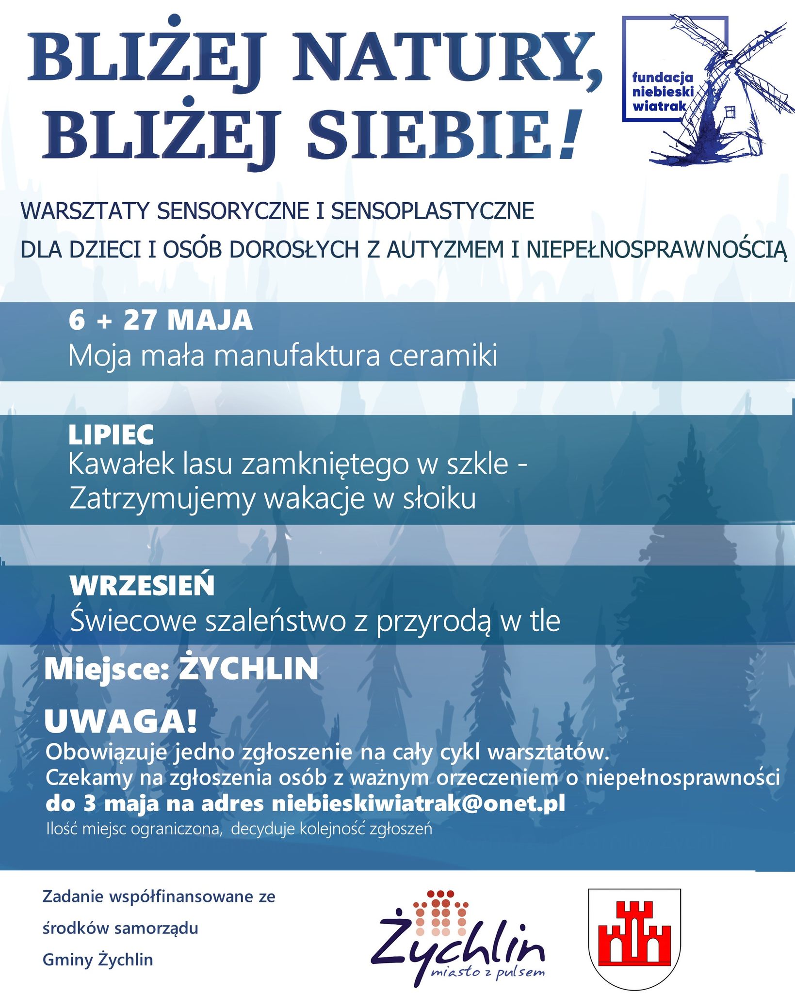zadaniami własnymi gminy. Zaplanowane w ramach cyklu warsztatów działania mają na celu wieloaspektowy rozwój osób z autyzmem i z niepełnosprawnościami, tj. rozwój motoryczny, rozwój emocjonalny, rozwój społeczny. Podczas wszystkich spotkań uczestnicy mają kontakt z naturą, ale w zdecydowanie inny sposób niż wyjście w teren i obserwacja przyrody. Jest to obcowanie z przyrodą na gruncie sensorycznym.